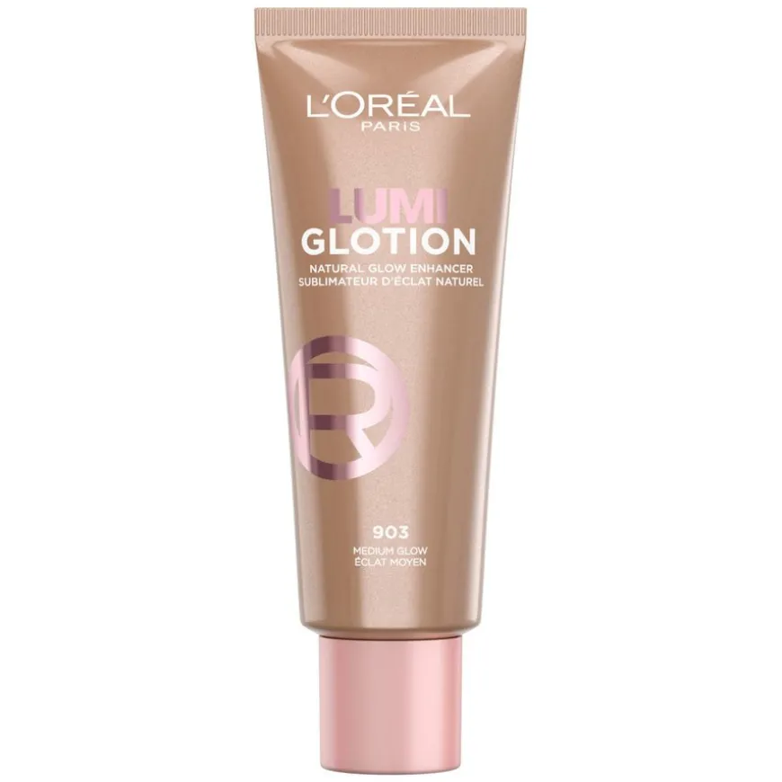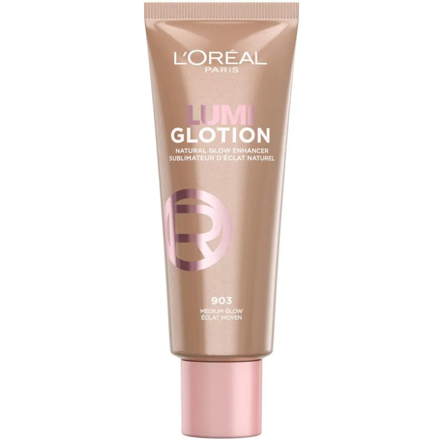 Lumi Glotion Highlighter er en flytende highlighter som umiddelbart tilfører fuktighet og gir huden en strålende, naturlig glød. L’Oréal Paris Lumi Glotion tilfører umiddelbart fuktighet og en gir et strålende hint av farge for å fremheve hudens naturlige glød og gi huden et naturlig, strålende utseende. Glow lotion-formelen er beriket med sheasmør og glyserin for 24 timers fukt*. Formelen er dessuten uten parfyme, velegnet til sensitiv hud, testet under dermatologisk kontroll og tilstopper ikke porene (ikke-komedogen).