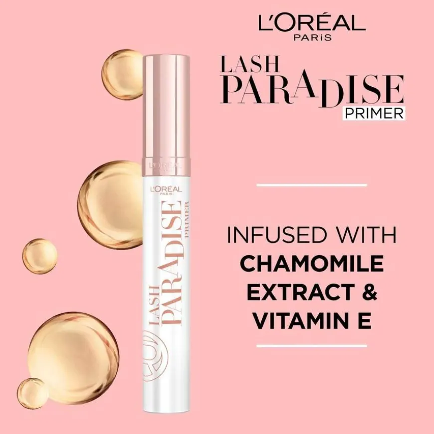 Forsterk resultatet til din Lash Paradise Mascara! L’Oréal Paris Lash Paradise Lash Primer har en plumpende effekt og virker som en base for å gi fyldige vipper med 1,4x* mer volum sammenlignet med bruk av kun mascara*. Formelen består av 99 % ingredienser av naturlig opprinnelse og er beriket med et pleiende kamilleekstrakt og E-vitamin og hjelper til å styrke vippene. Lash Paradise Lash Primer er like pleiende som en maske men virker som en vanlig vippeprimer. Testet under oftalmologisk kontroll. Velegnet til sensitive øyne.