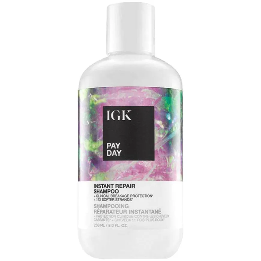 Pay Day Instant Repair Shampoo er en skånsomt rensende shampoo, klinisk bevist å redusere brudd og styrke håret. Med rene, bindingsbyggende, biomimetiske og fuktighetsrike aktive ingredienser, er denne rensen den første essensielle løsningen for å gjenopprette og gi sunnere hår. Velegnet for skadet, tørt og behandlet hår. Vegansk.
