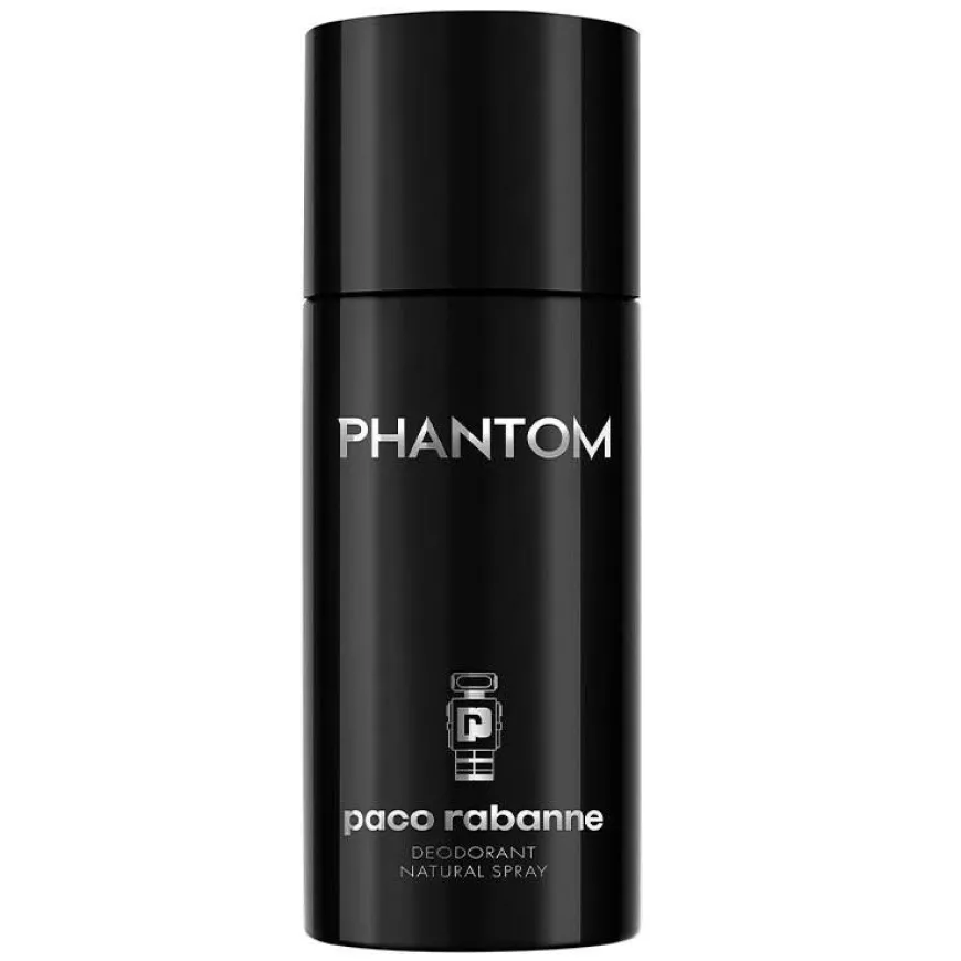 Phantom Deospray er en deodorant fra Paco Rabanne med en futuristisk aromatisk duft, en miks av luksuriøst håndverk og kunstig intelligens. En innovativ kreativ metode for å velge ingredienser som gir følelse av energi, makt og selvtillit. En modig duft med noter av avhengighetsskapende lavendel, energigivende sitron og sexy vanilje med hint av vetiver. Phantom har en bærekraftig formula: en duft for i dag, laget for fremtiden. Håndlaget i Frankrike med etisk høstede naturlige ingredienser. Oppsiktsvekkende og iøynefallende design laget med chrome, metall og sorte detaljer. Inspirert av verdensrommet.