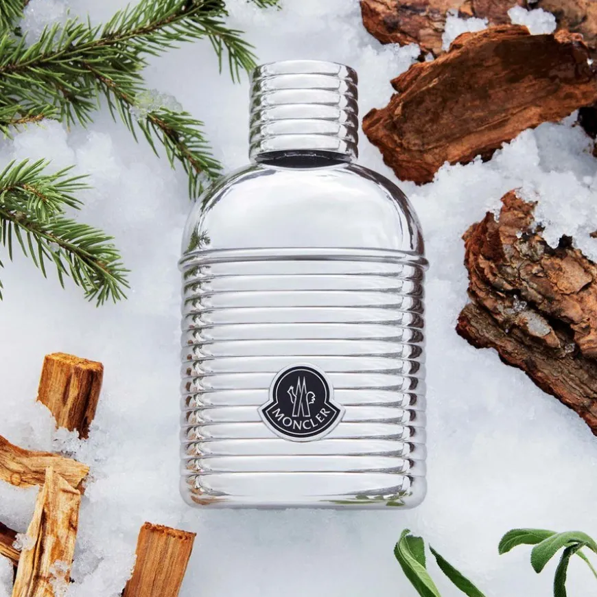 Moncler Pour Homme er en woody og aromatisk duft. Toppnoten kombinerer alpingrønn akkord med kraftig muskatsalvie. Hjerte er laget av sypress og sedertre. Bunnoten inneholder fjelltre-akkord og luksuriøs vetiver.