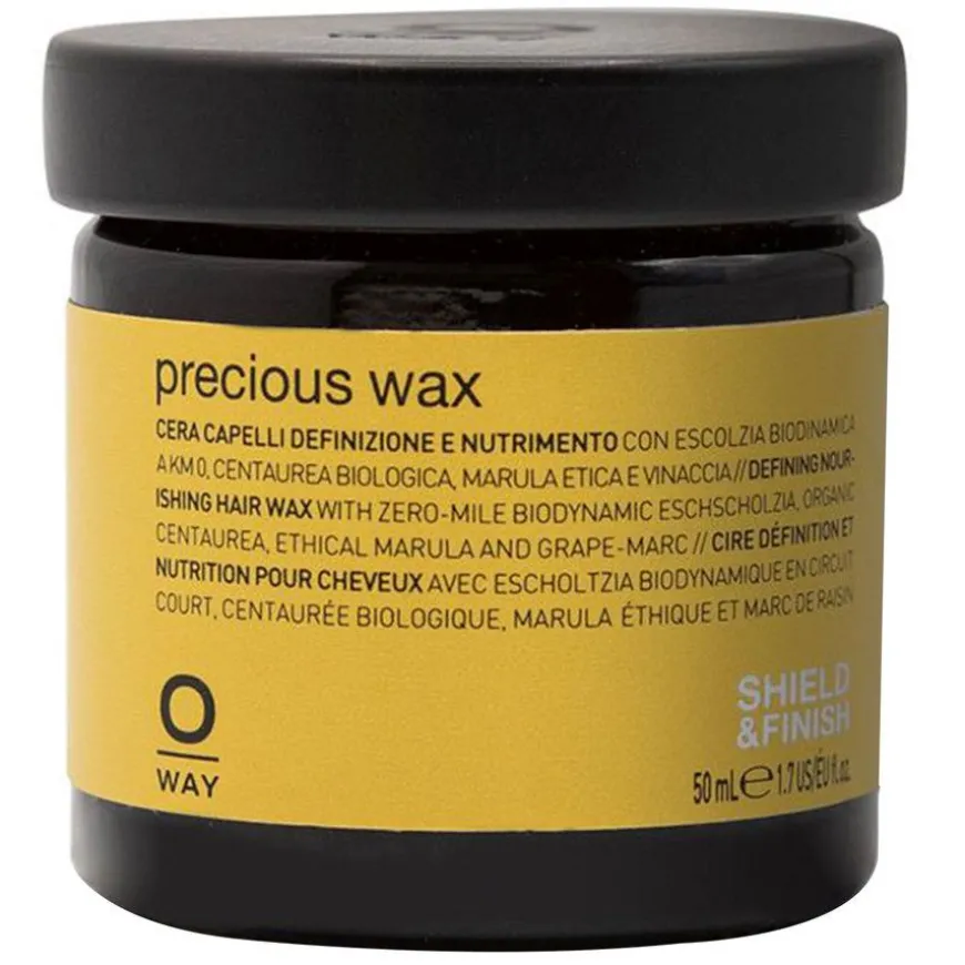 Precious Wax er en definerende og næringsgivende voks.Ekstrem glans, ekstra definisjon av seksjoner, teksturer og næring. Ideell for ustrukturerte frisyrer.