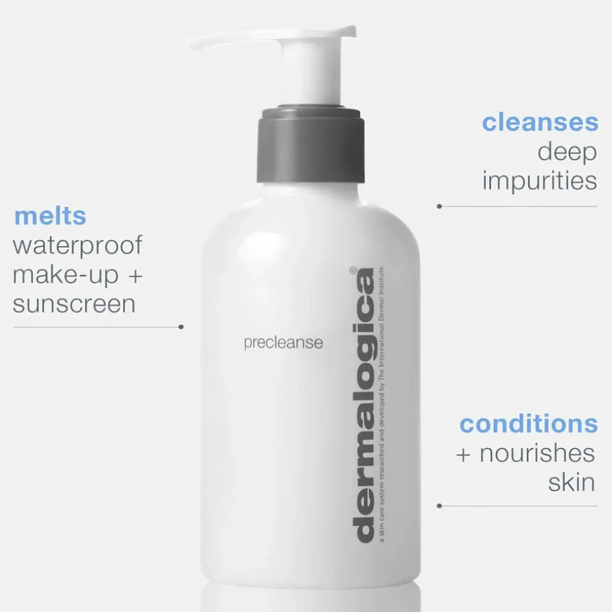 Precleanse er en dypt rensende olje som løser opp urenheter og makeup fra huden. Oppnå en ultra ren og sunn hud med denne todelte rensen. Renserutinen består av Precleanse som er det første steget av renseritualet, deretter benytter du deg av din foreskrevne Dermalogica rens for å oppnå et best mulig resultat. Precleanse inneholder oljer fra oliven, kukui og aprikos og disse fjerner effektivt overflødig talg, solkrem, vannfast makeup, forurensing og produktrester som bygges opp på huden i løpet av dagen. Mykgjørende riskli og E-vitamin gjør denne milde blandingen til en dyprens som passer alle hudtilstander, selv de fetere. Uten kunstig farge eller duft. Produktet er vegansk og cruelty-free.
