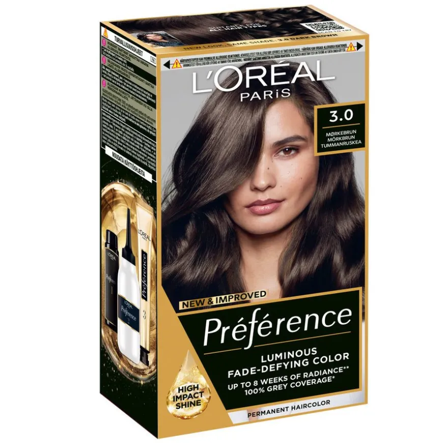 L’Oréal Paris Préférence er en perfekt hårfarge til deg som vil ha en strålende og glansfull farge som ikke falmer. Strålende farge i opptil 8 uker** som dekker grå hår opptil 100 %*. Fargeblandingen kan skylles ut eller bare 25 minutter. Etterlater håret strålende og silkemykt.