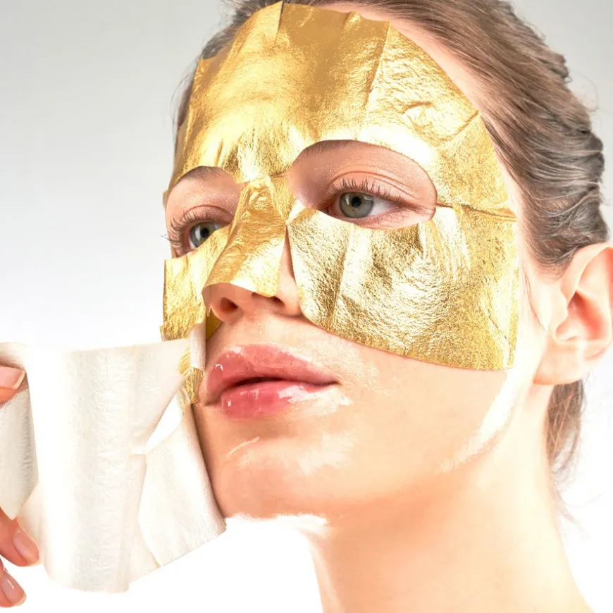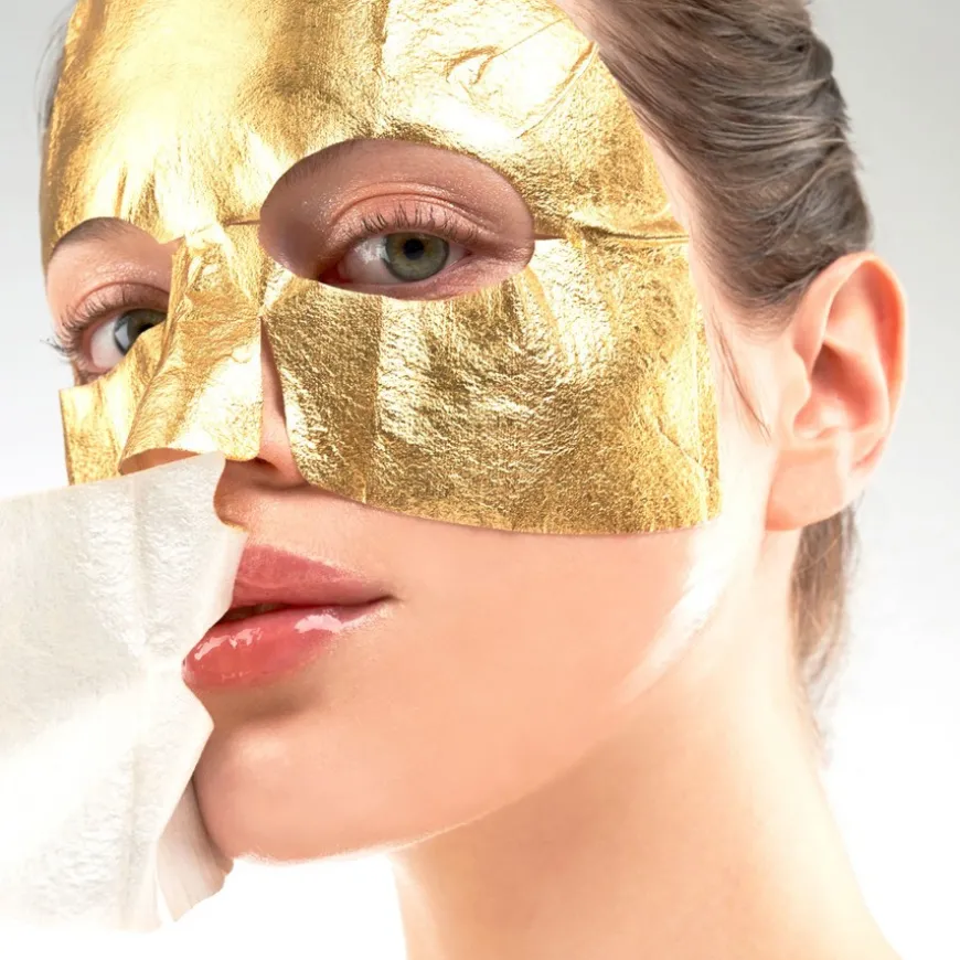 Premium Gold Foil Triple Layer Mask er en luksuriøs, nærende, hydrerende sheet-maske med en bevist evne til å fukte huden over lengre tid enn en vanlig sheet-maske. Inneholder seks forskjellige typer hyaluronsyre, og nærende ceramider. Patentert trelags struktur av gullfolie, fuktighetsgivende konstruksjon og TENCEL® forhindrer fordampning av essens og varmen fra huden, og skaper en dampeffekt som forbedrer maskens fuktighetsgivende egenskaper.