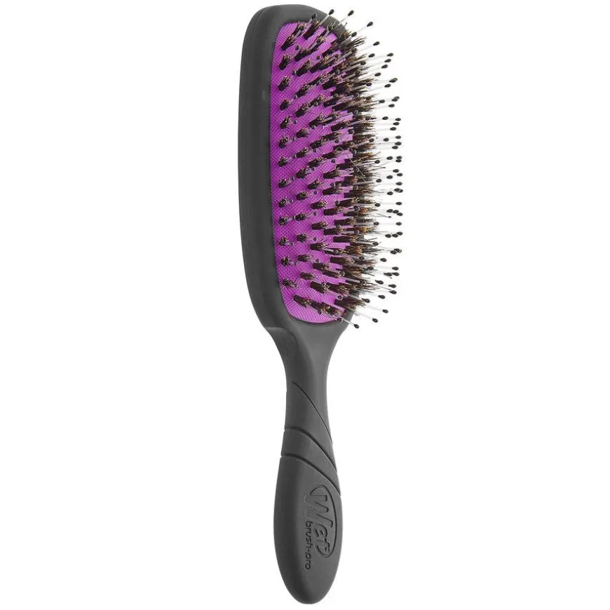 Pro Shine Enhancer Black er en glansbørste med et ergonomisk grep med en gummibelagt EasyGrip-overflate som gir bra grep selv med våte hender. Børsten består av både villsvinbust og en ekstra myk IntelliFlex-bust som fjerner floker og fordeler hårets naturlige oljer, og etterlater håret mykt og glansfullt. Børsten beskytter også håret mot brekasje og flisete tupper.