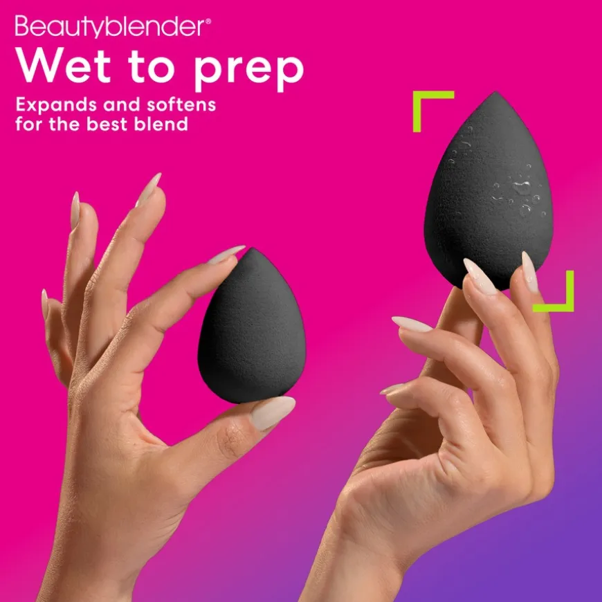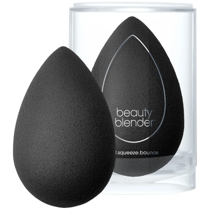 Den beste måten å tørke Beautyblenderen på er å legge den sidelengs på toppen av beholderen, slik at det kommer luft til rundt hele blenderen.