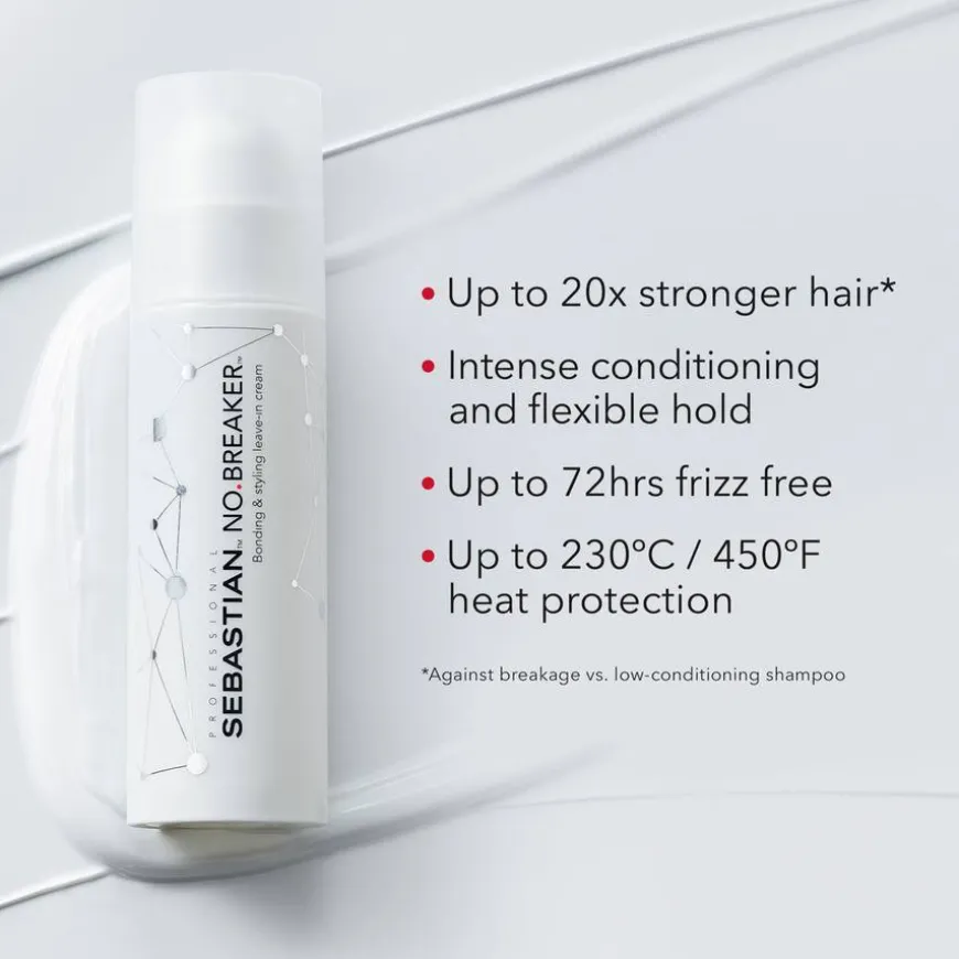 Sebastian Professional No.Breaker Bonding & Styling Leave-in Cream er en pleiende hårkrem for alle hårtyper. Denne bindingsbyggende stylingkremen gjør håret krusfritt i opptil 72 timer og gir fleksibelt hold samtidig som den gir varmebeskyttelse opptil 230 °C/450 °F.