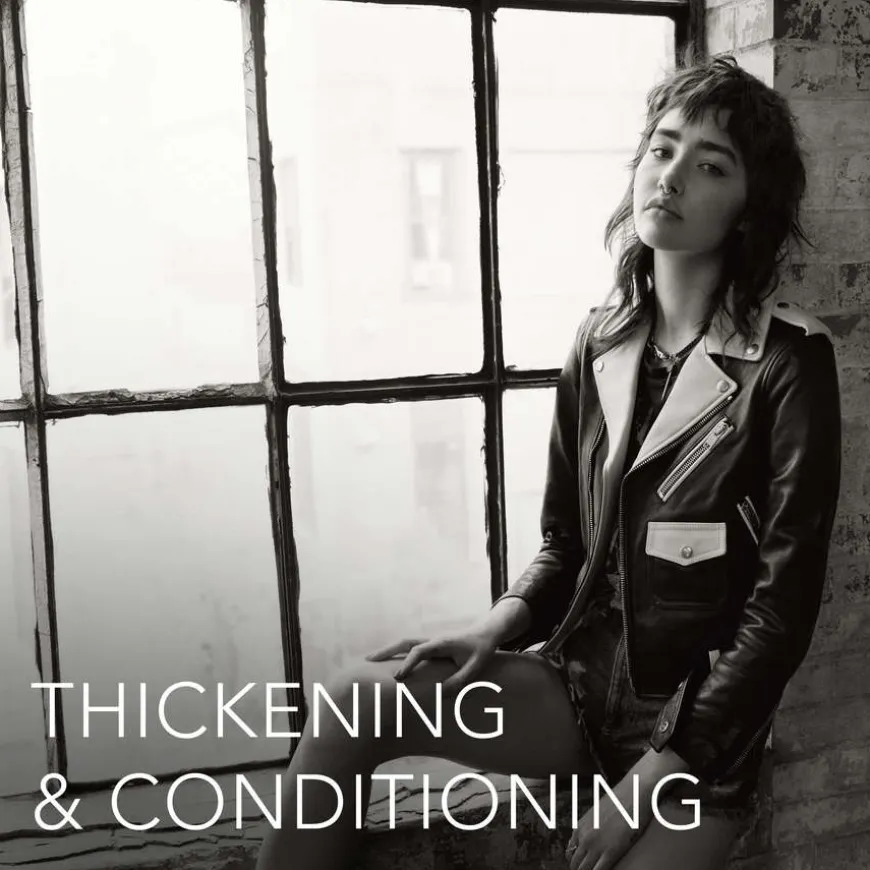 - Påfør Thickefy Foam jevnt i håndkletørket hår.