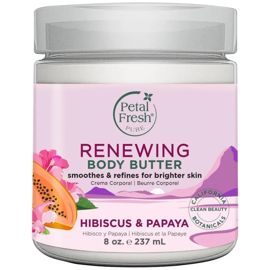 Hibiscus & Papaya Renewing Body Butter er en fuktighetsgivende kroppskrem som fornyer huden og gir en jevnere hudtone. Kroppskremen er beriket med sertifisert organisk hibiskus og papaya, som skånsomt eksfolierer huden, øker cellefornyelsen og bidrar til å jevne ut hudtonen. Denne rike, kremete formelen inneholder også Coconut Oil Complex – en eksotisk blanding av kokosolje, arganolje og sheasmør, som gir intensiv fuktighet og etterlater huden silkemyk og velpleid. Perfekt for de som ønsker å fornye og pleie huden samtidig.