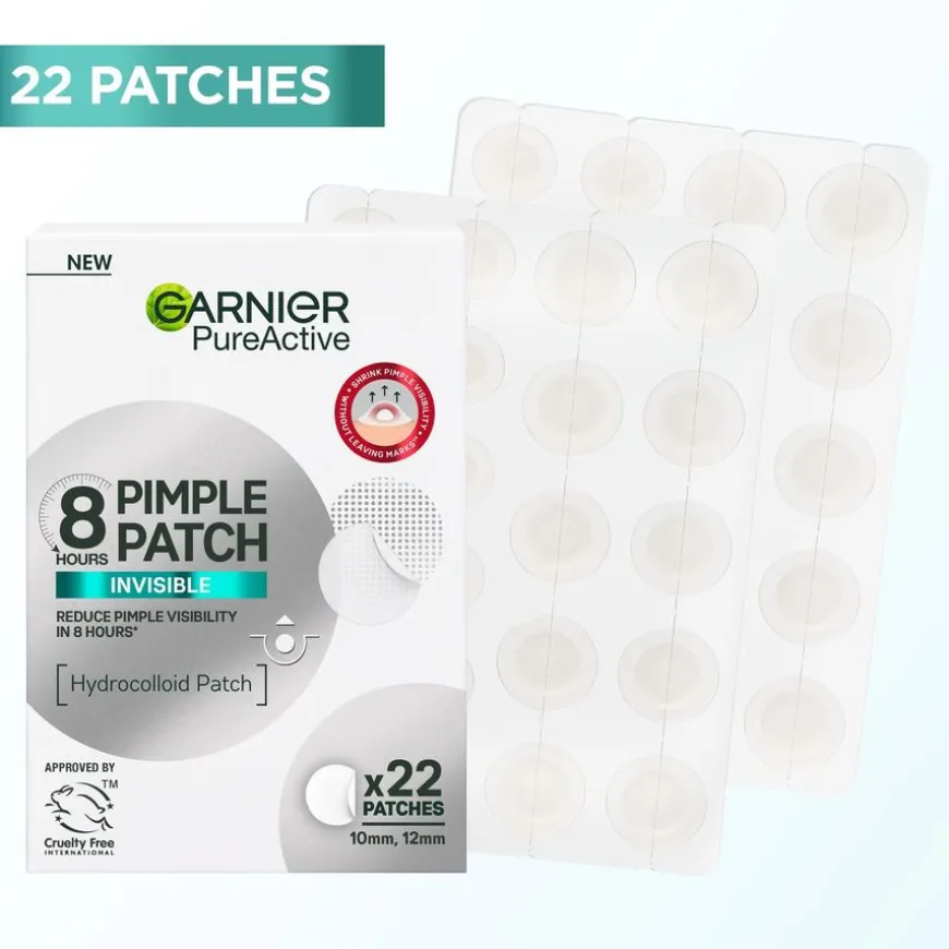 Garnier Pure Active Invisible Pimple Patch er supertynne, selvklebende og absorberende patches (små selvklebende rundinger) som hjelper til med å tørke ut urenheter og gjøre dem mindre synlige etter kun én gangs bruk. Kommer i to størrelser: 10mm og 12mm.