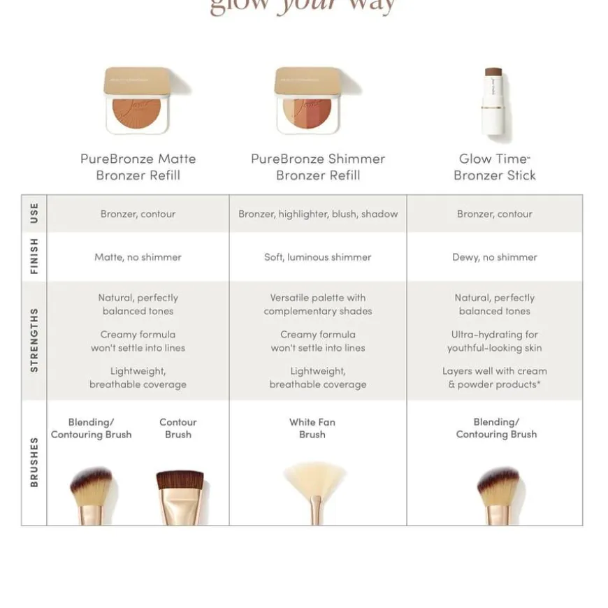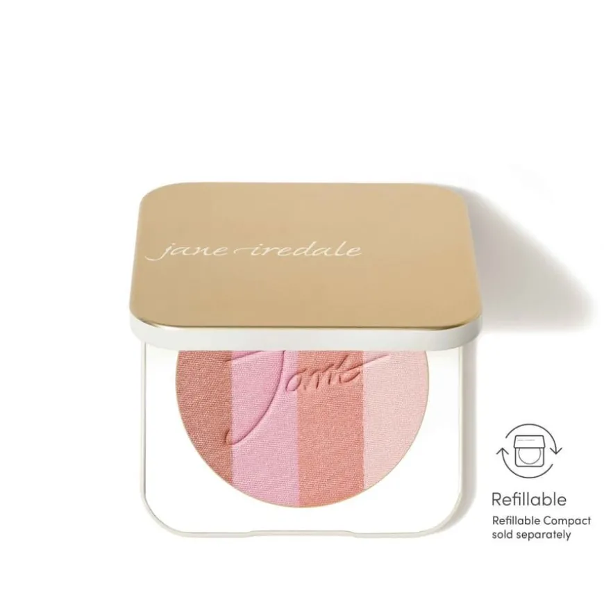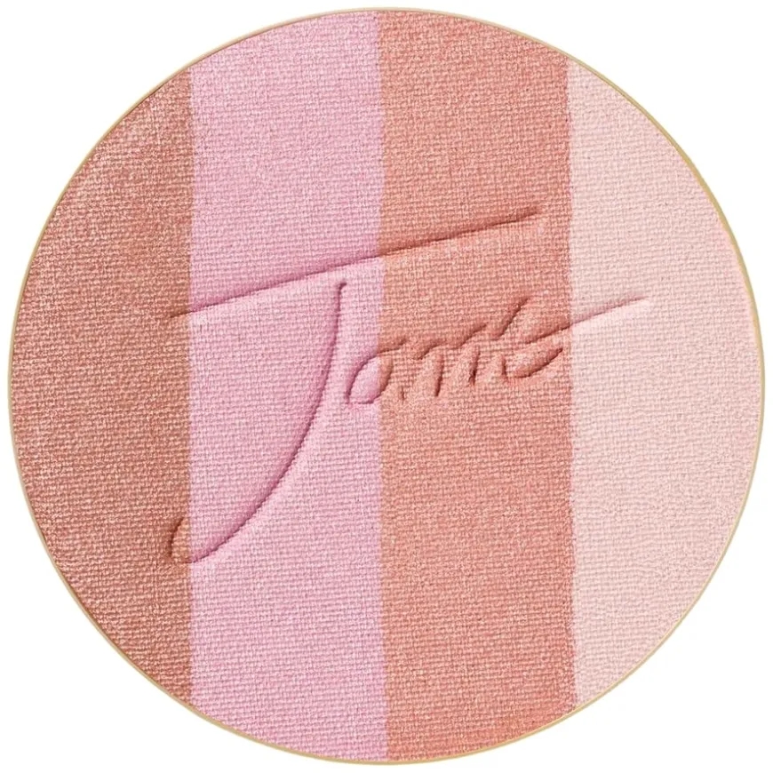 - Legg refillen i refillable compact og påfør med jane iredale Fan Brush over kinn, nese, hake og panne for en solkysset look.