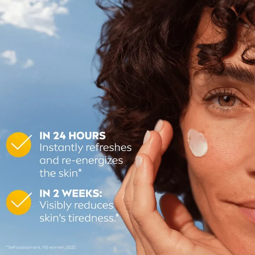 På 24 timer: Gjør slik at huden umiddelbart ser friskere ut og tilfører ny energi hos 92 % av kvinnene (egenvurdering, 110 kvinner, 2022). Sunn glød hele dagen. På 2 uker: reduserer synlig tretthet i huden hos 95 % av kvinnene (egenvurdering, 110 kvinner, 2022). Fastere og strålende hud. På 4 uker: reduserer synlig fine linjer, bidrar til å motvirke de første tegnene på aldring hos 91 % av kvinnene (egenvurdering, 110 kvinner, 2022). Hos 88 % av kvinnene bekreftes det at dagkremen synlig reduserer fine linjer (egenvurdering, 2 ukers studie, 110 kvinner, 2022).