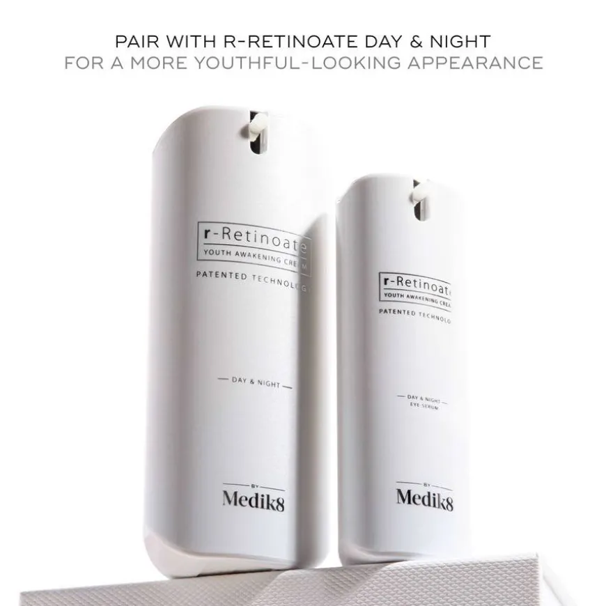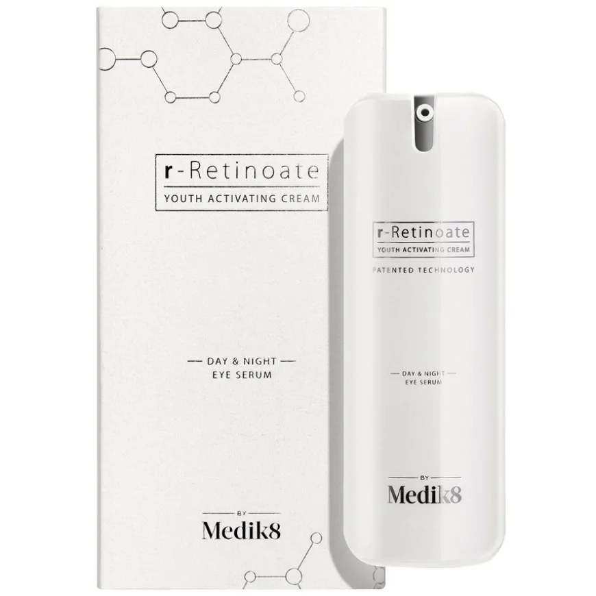 - Retinylretinoat: et revolusjonerende hybridmolekyl av A-vitamin som finnes i r-Retinoate®. I retinylretinoat kombineres retinol og retinoidsyre til et nytt supermolekyl. Dette innkapslede molekylet er unikt for Medik8, som har globalt patent på innovasjonen. Retinylretinoat kan forsterke kollagenproduksjonen opptil åtte ganger mer enn retinol, og kan også brukes om dagen takket være sin eksepsjonelle stabilitet i lys.