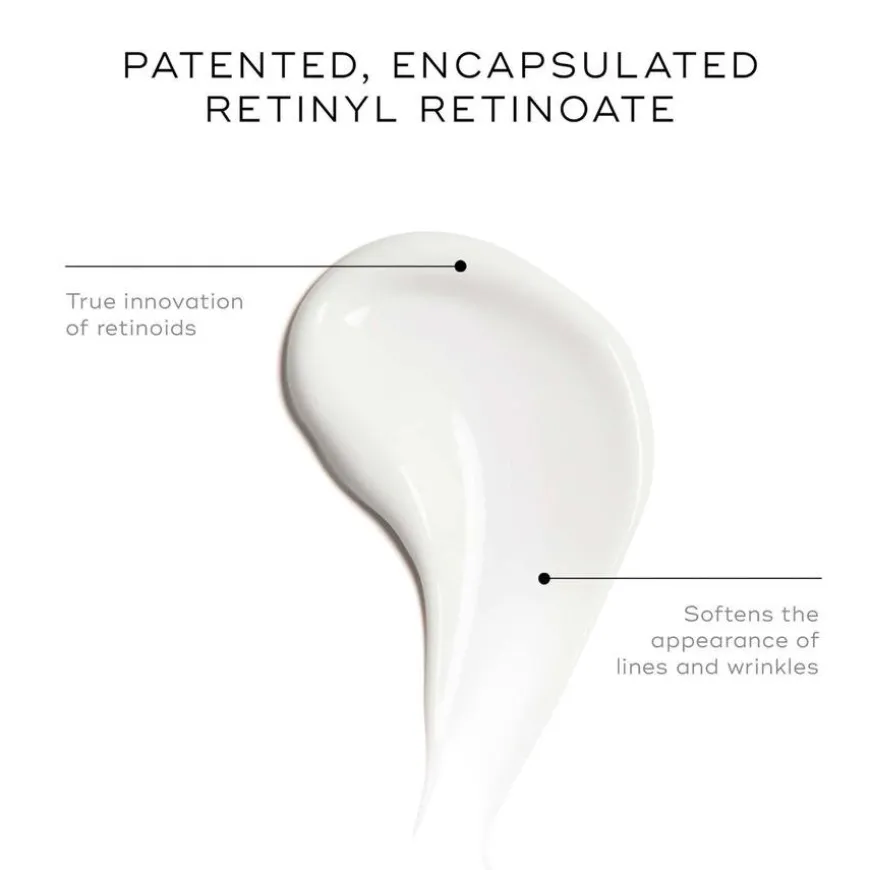 - Time Release Technology (Polymer Encapsulation): «Time Release Technology» bidrar til å stabilisere r-Retinoate-molekylet og langsomt frigjøre syrene i huden over seks timer. Dermed minimeres unødig irritasjon, og resultatet optimaliseres.