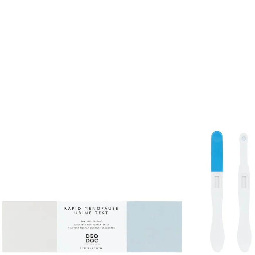 Rapid Menopause Test fra DeoDoc er en selvtest som raskt og pålitelig oppdager forhøyede nivåer av follikkelstimulerende hormon (FSH) i urinen, noe som kan indikere at du er i perimenopause eller overgangsalder. Testen er enkel å utføre hjemme og gir deg svar innen 5 minutter, slik at du kan få klarhet i kroppens hormonelle endringer i ro og mak. Med en følsomhet, treffsikkerhet, pålitelighet og nøyaktighet på over 99,9 % gir testen deg trygghet og presise resultater. Settet inneholder 2 tester.