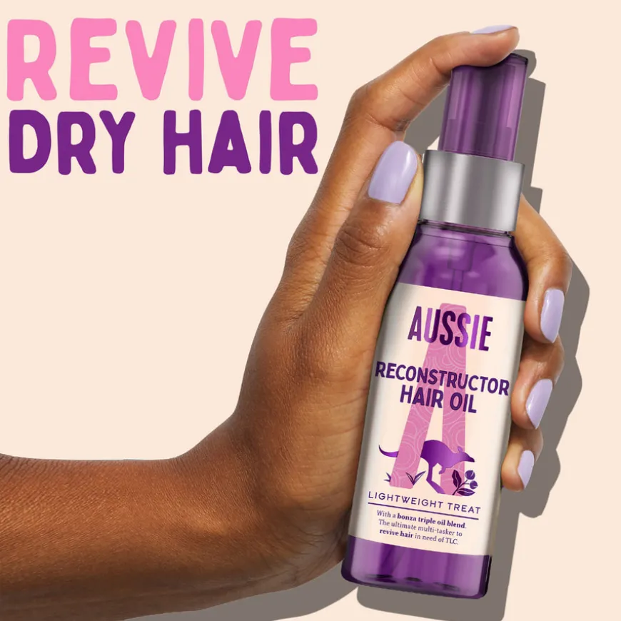 Reconstructor Hair Oil fra Aussie er en lett og allsidig hårolje som gir nytt liv til tørt og skadet hår. Den veganske og dyrevennlige formelen inneholder en trippelblanding av australsk makadamianøttolje, jojobaolje og avokadoolje, som reparerer, glatter og gir håret en naturlig glans uten å tynge det ned. Med sin søte og forfriskende duft, etterlater den håret mykt, skinnende og velduftende. Denne multitaskeren kan brukes på tre måter: før hårvask for næring, på fuktig hår for å gjøre det glattere, eller på tørt hår for optimal glans. Perfekt for daglig pleie og hår som trenger ekstra omsorg.