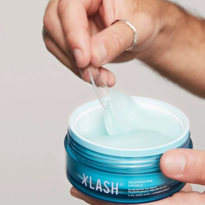 Rejuvenating Eye Gels fra XLASH er kjølende og revitaliserende øyemasker utviklet for å redusere mørke ringer, hevelser og fine linjer under øynene. Hver gel pad er mettet med aktive ingredienser som gir umiddelbar fukt og en oppfrisket følelse. Formelen inneholder HA7 – syv typer hyaluronsyre som gir flerdimensjonal hydrering, samt ceramider og aminosyrer som styrker hudbarrieren og stimulerer kollagenproduksjon. Koffein og arnica virker drenerende og reduserer synligheten av mørke ringer og poser. Lavendel virker beroligende og er ideell for sensitiv hud. Gelene er laget med renset, atmosfærisk dampvann for optimal renhet og effekt. De er parfymefrie og dermatologisk testet. Perfekt før sminke, etter lange dager eller som en del av din daglige hudpleierutine.