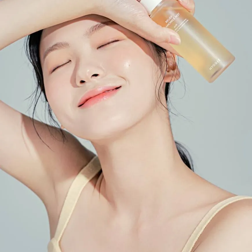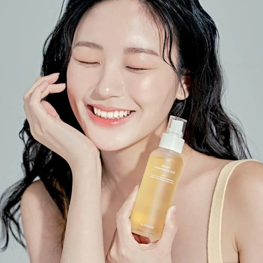 Hyggee Relief Chamomile Mist er en beroligende mist med 20% naturlig kamilleekstrakt som effektivt lindrer sensitiv og/eller irritert hud. Beriket med fuktighetsgivende ingredienser som betain, centella asiatica-ekstrakt og hyaluronsyre som umiddelbart øker fuktighetsnivået, selv i svært dehydrert hud.