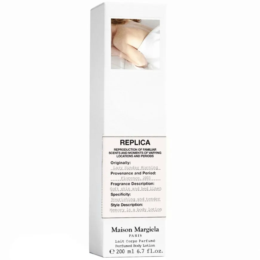 Maison Margiela Replica Lazy Sunday Morning Body Lotion. Lazy Sunday Morning er en blomsterduft som er like myk som en sen morgen i sengen, med delikate noter av kremet hvit musk og liljekonvall. Gleden av å våkne opp med solstrålen på huden og krøllete laken … en ren følelse av frisk duft og komfort. Solstråler inn gjennom det gardinkledde vinduet som signaliserer at morgenen er ankommet. Innpakket i friskt, rent, hvitt bomullslaken, nyter du starten på dagen ved å ligge litt lenger i sengen.For første gang får nå en av de mest populære Replica-duftene en egen Bath and Body-kolleksjon. Gjenopplev din mest luksuriøse Lazy Sunday Morning hver dag, med et nytt duftrituale, hjemme hos deg selv eller hvor enn du er.