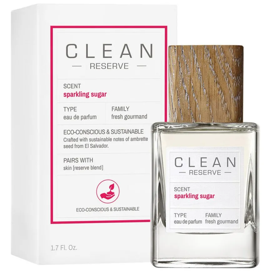 Clean Reserve Sparkling Sugar – en flørtende og uimotståelig duft inspirert av et uforglemmelig smil. Kombinasjonen av solbær, lekker fersken og rosa sukker skaper en duftopplevelse nesten umulig å motstå!