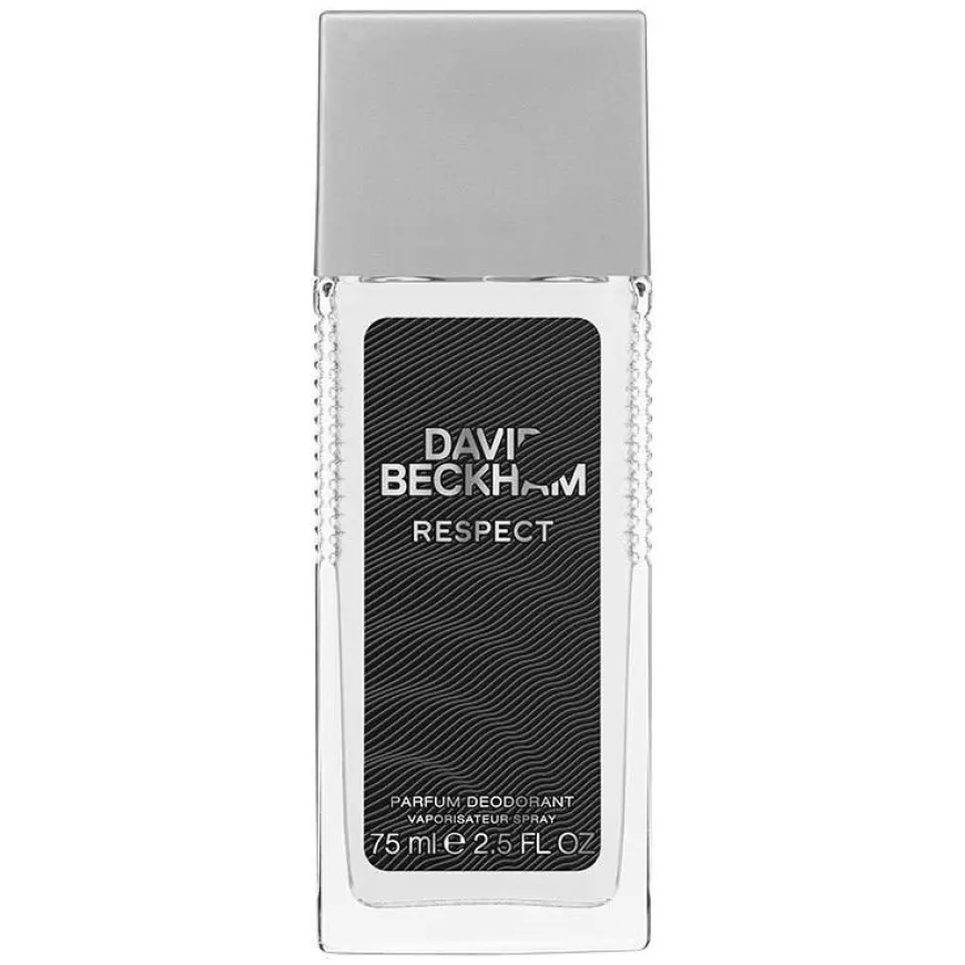 Respect Parfum Deodorant Spray er en parfymert deodorantspray for menn. David Beckham er en mann forbundet med mote, stil, sport og suksess, og ut fra dette kommer duften Respect. Respect av David Beckham åpner for en lysende blanding av pikant grapefrukt og saftige noter av vannmelon sammen med et brennende hint av rosa pepper for øyeblikkelig opphisselse. Hjertenotene avslører rene og aromatiske toner takket være den ferske fusjonen av basilikum og lavendin fremhevet av et kjølig hint av kardemomme. Dette utvikler seg til en dyp maskulin duft med en kraftig treaktig signatur som er formet av varmen fra vetiver, intensiteten av patchouli og den dype karakteren til mose.