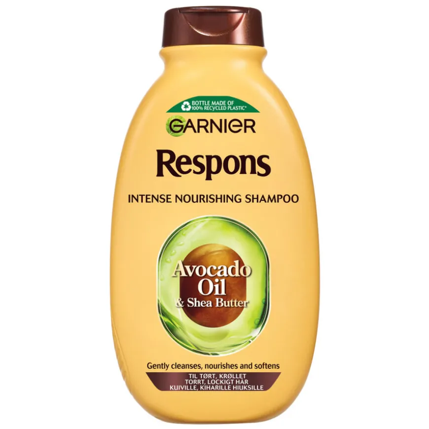 Respons Avocado Oil & Shea Butter er en shampoo som har en vegansk formel* som er beriket med fuktighetsgivende avocadoolje og sheasmør. Den fyldige formelen pleier og glatter ut tørt og krusete hår. Etterlater håret ditt mykt og revitalisert. Laget av 100 % resirkulert plast** og er 100 % resirkulerbar.