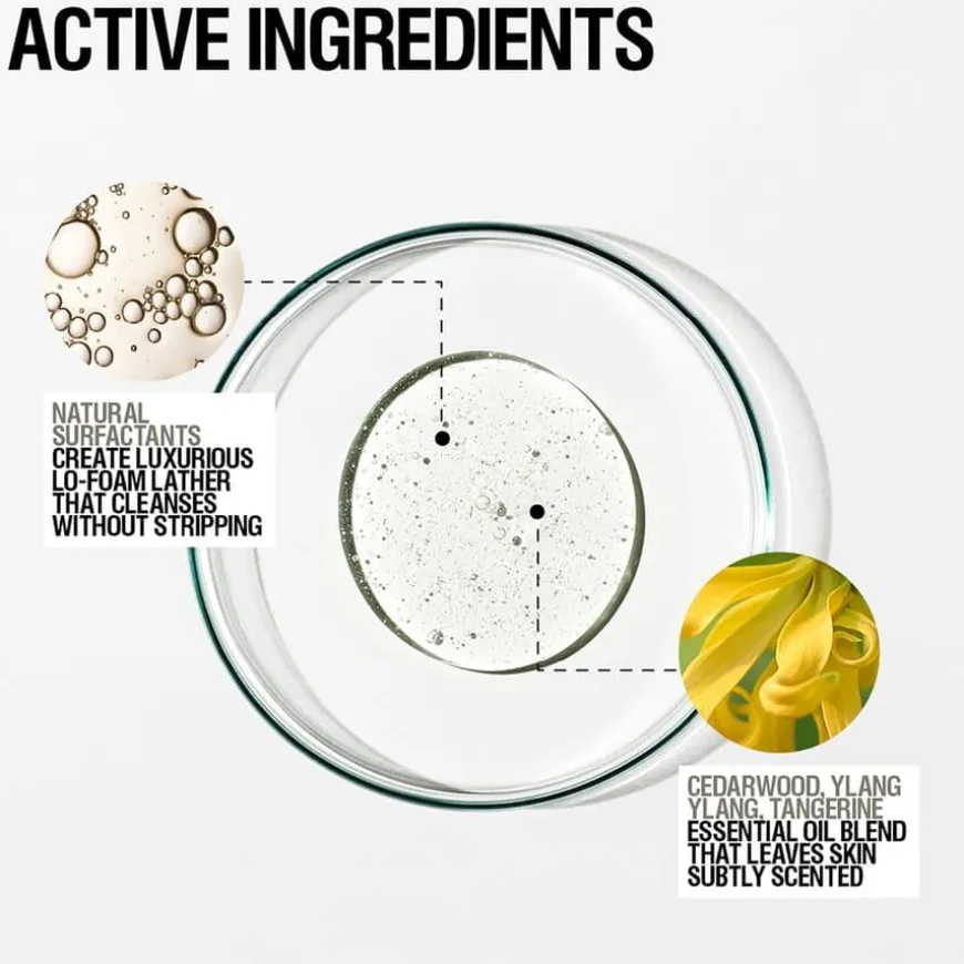 Water/Aqua/Eau, Pentylene Glycol, Coco-Glucoside, Sodium Lauroyl Sarcosinate, Cellulose Gum, Caprylyl/Capryl Glucoside, 1,2-Hexanediol, Citrus Aurantium Dulcis (Orange) Peel Extract, Sodium Benzoate, Cocamidopropylamine Oxide, Algin, Citric Acid, Sodium Gluconate, Potassium Sorbate, Glyceryl Oleate, Cedrus Atlantica Bark Oil, Lavandula Angustifolia (Lavender) Oil, Citrus Nobilis (Mandarin Orange) Peel Oil, Piper Nigrum (Pepper) Fruit Oil, Aloe Barbadensis Leaf Juice, Cananga Odorata Flower Oil, Santalum Album (Sandalwood) Oil, Myroxylon Pereirae (Balsam Peru) Oil, Triethyl Citrate, Citrus Tangerina (Tangerine) Peel Oil, Tocopherol, Hydrogenated Palm Glycerides Citrate, Limonene, Linalool