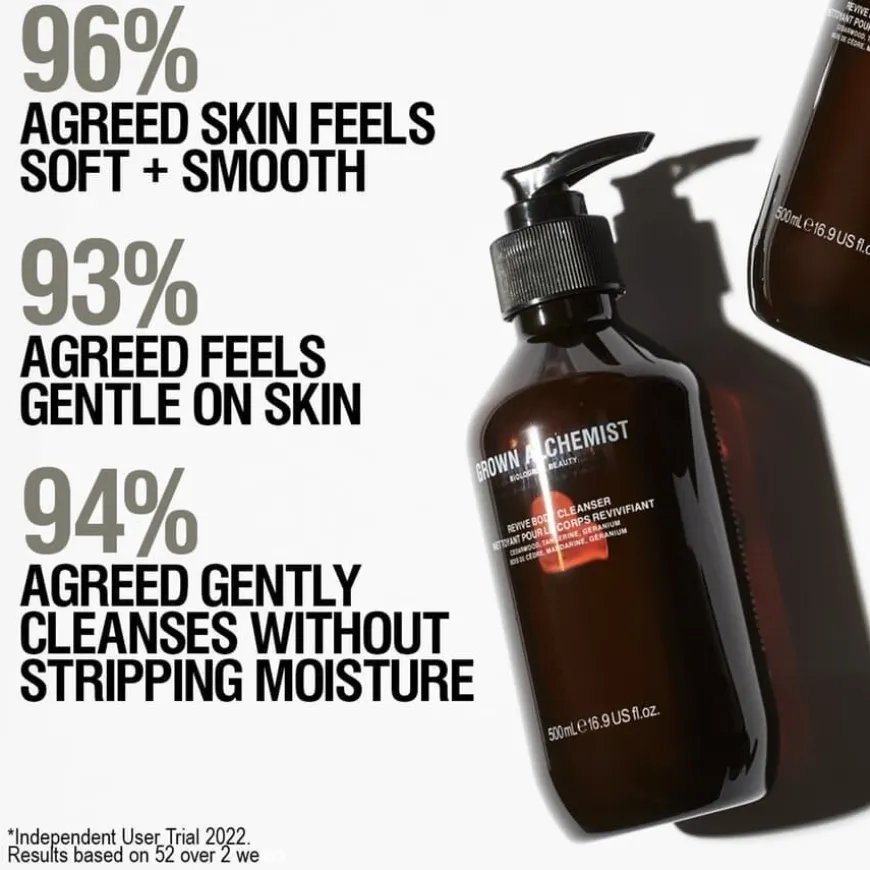 Revive Body Cleanser er en oppkvikkende kroppsvask som nærer og rengjør uten å strippe huden for fuktighet. Formulert med plantebaserte rensestoffer og duftnoter av Geranium, Mandarin og Sedertre.