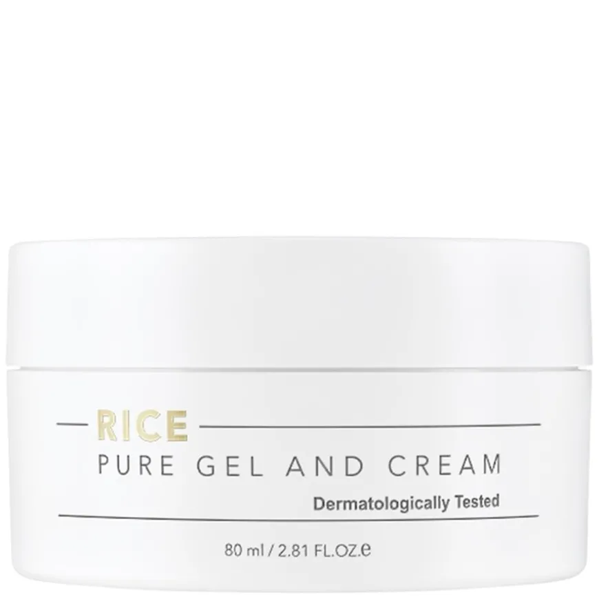 Rice Pure Gel And Cream er en innovativ 2-i-1 fuktighetskrem som kombinerer en lett gel og en nærende krem for optimal hudpleie. Beriket med koreansk Gyodong-risekstrakt og nøye utvalgte naturlige ingredienser, gir den huden en klar, sunn og strålende glød.