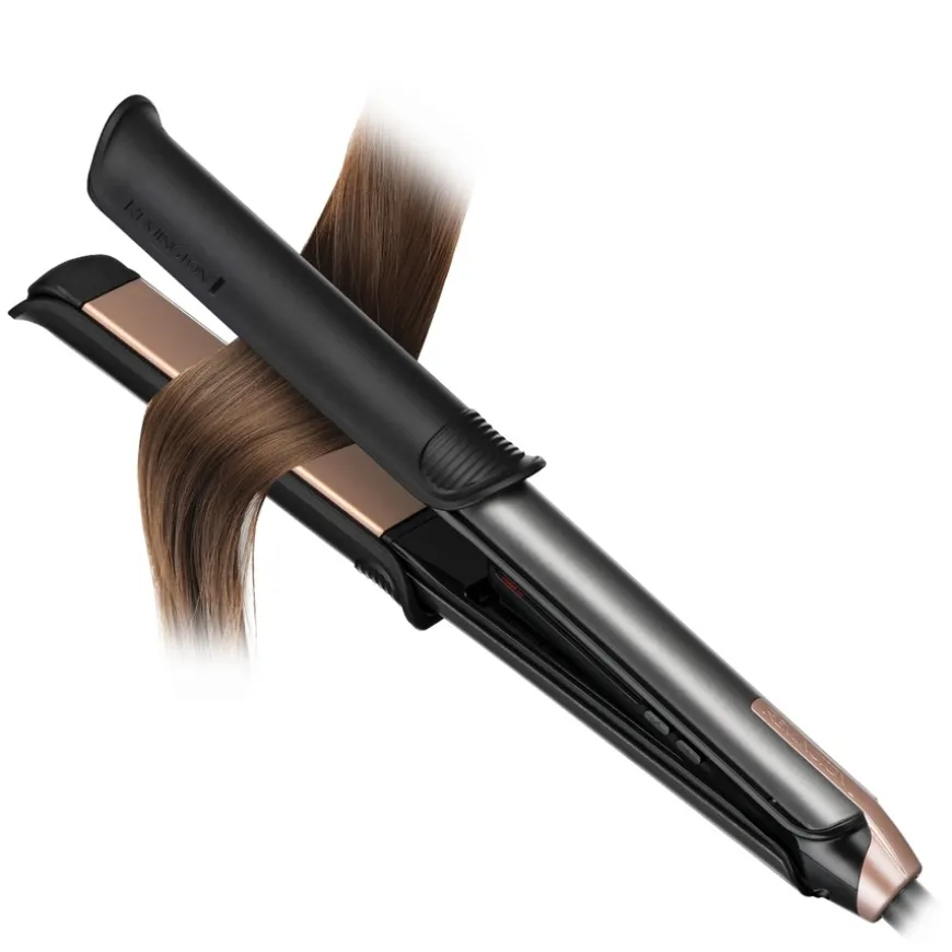 S6077 One Straight & Curl Styler er en 2-i-1 rettetang og krølltang som gir deg mulighet til å skape alt fra glatte frisyrer til myke bølger og spenstige krøller – med ett og samme verktøy. Den har fleksible FlexiCovers som lar deg enkelt bytte mellom rettemodus og krøllmodus. De 110mm lange keramiske platene med antistatisk tourmalin gir et jevnt, glansfullt resultat uten frizz. I krøllmodus gir den 32mm brede krøllebøylen langvarige og definerte krøller takket være et anti-slip belegg. Med digitale temperaturinnstillinger (150–230°C) og rask oppvarming på kun 20 sekunder, er den ideell for alle hårtyper. Leveres med stylinghanske og varmebestandig oppbevaringspose – perfekt både hjemme og på reise.
