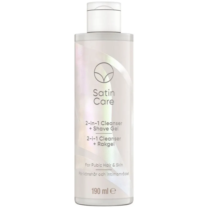Gillette Venus + Satin Care 2-in-1 Cleanser + Shave Gel kan brukes til å gi beskyttende glid som bidrar til å forebygge irritasjon under barbering, eller daglig som en skånsom rens. Dermatologisk og gynekologisk testet. pH-balansert. Laget uten fargestoffer, parfyme og silikon.