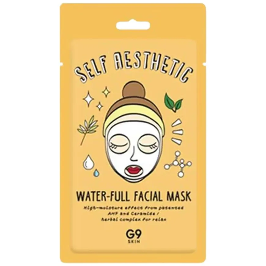 Self Aesthetic Water-Full Facial Mask er en dypt fuktighetsgivende sheetmaske utviklet for å revitalisere tørr, dehydrert og sensitiv hud. Masken er formulert med Centella Asiatica og ceramider som styrker hudbarrieren og forbedrer hudens evne til å holde på fuktighet. Squalan og hyaluronsyre tilfører intensiv hydrering og gir huden en myk, plumpet følelse. Beriket med en unik urteblanding av lavendel, sjasmin, syrin og calendula virker masken beroligende og balanserende. En patentert AMF-kompleks (Artificial Moisturizing Factor) sørger for langvarig fukt, mens maskens 100 % naturlige cellulosemateriale sikrer optimal passform og komfort. Perfekt som en spa-lignende behandling hjemme, eller som en pleiende gave til huden – for øyeblikkelig glød, ro og fukt.