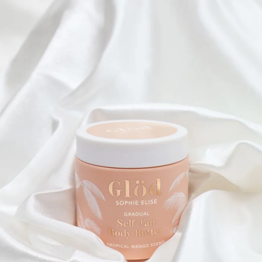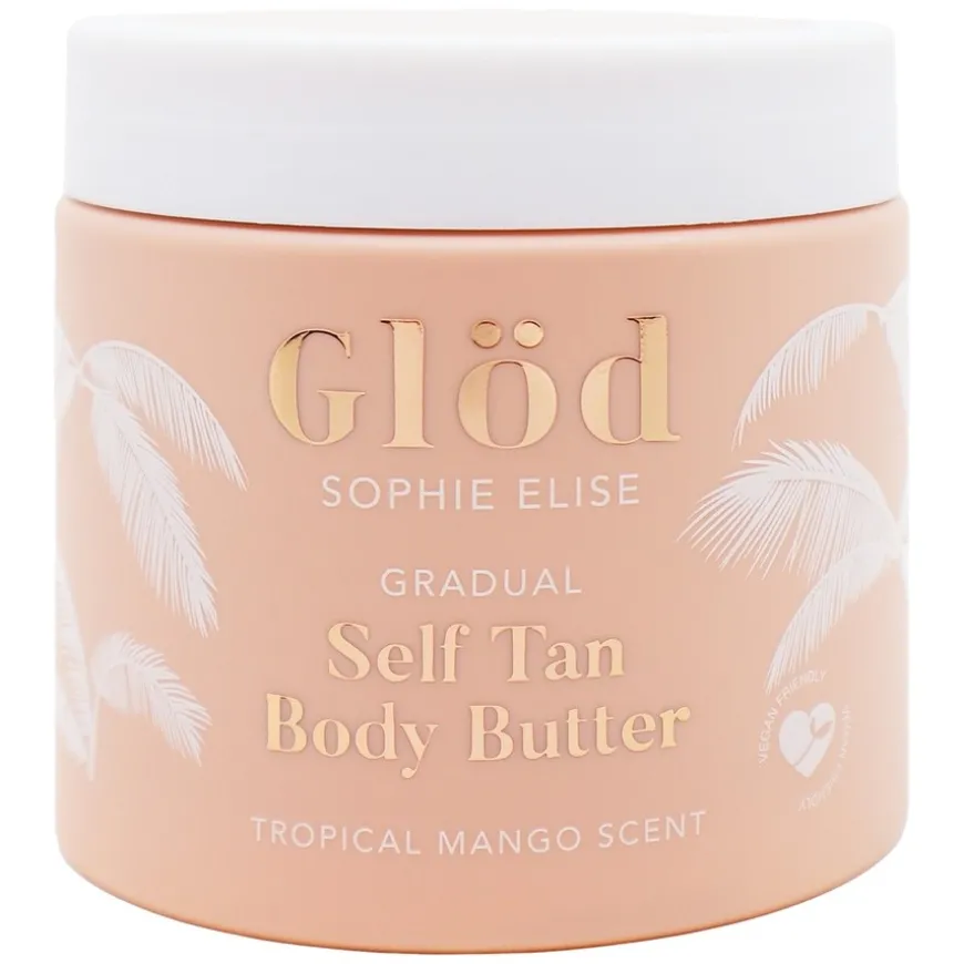 Glöd sitt Self Tan Body Butter er et rikt, men raskt absorberende luksuriøst kroppssmør som smelter inn i huden og bygger en gradvis brunfarge. Med aktive ingredienser som guarana, koffein og shea smør gir dette produktet samtidig et energigivende løft, fasthet til huden og fuktighet. Med duft av mild tropisk mango.