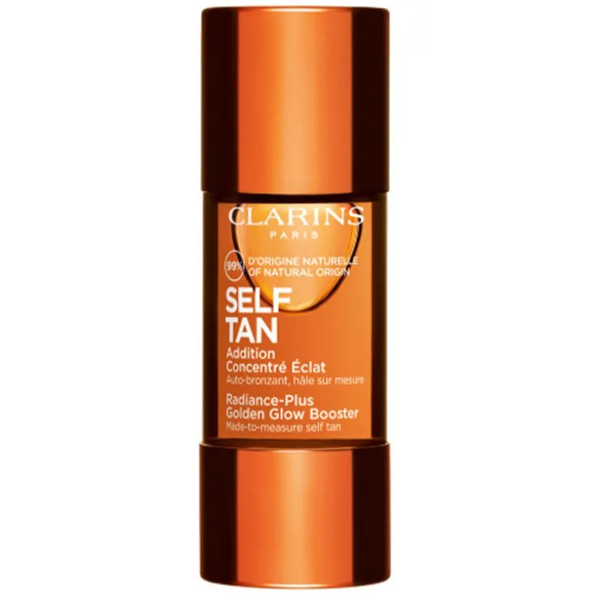 Clarins Self Tan Radiance-Plus Golden Glow Booster Face sørger for at du opprettholder en naturlig, solbrun farge gjennom hele året og kan blandes inn i din favoritt Clarins ansiktskrem. Super enkel å bruke, med et perfekt resultat hver gang for en vakker, naturlig, skreddersydd brunfarge.