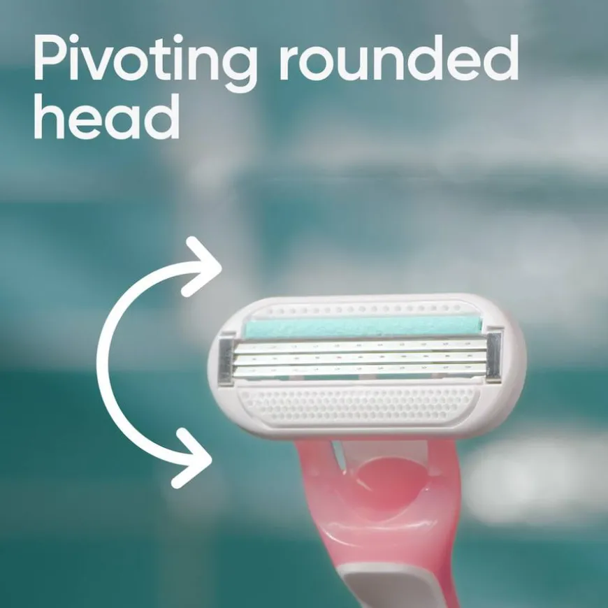 Venus Sensitive Disposable Razor er designet spesielt for kvinner med sensitiv hud og gir en nøyaktig, komfortabel barbering uten å irritere huden. Høvelen har tre fleksible blader som tilpasser seg kroppens konturer, noe som gir en tett barbering med hvert drag. Det bevegelige, avrundede hodet og myke beskyttelsesputer bidrar til å beskytte huden mot irritasjon under barberingen.