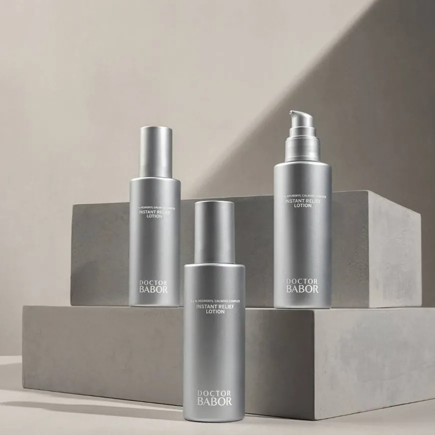 Doctor Babor Sensitive Instant Relief Lotion er en lett lotion som umiddelbart roer ned en reaktiv hud med rødhet, og lindrer brennende og kløende hudfølelse. Passer en kombinert/fet hud, til en tørrere hud brukes den som mellomlagskrem, og den kan også benyttes på kroppen ved behov.