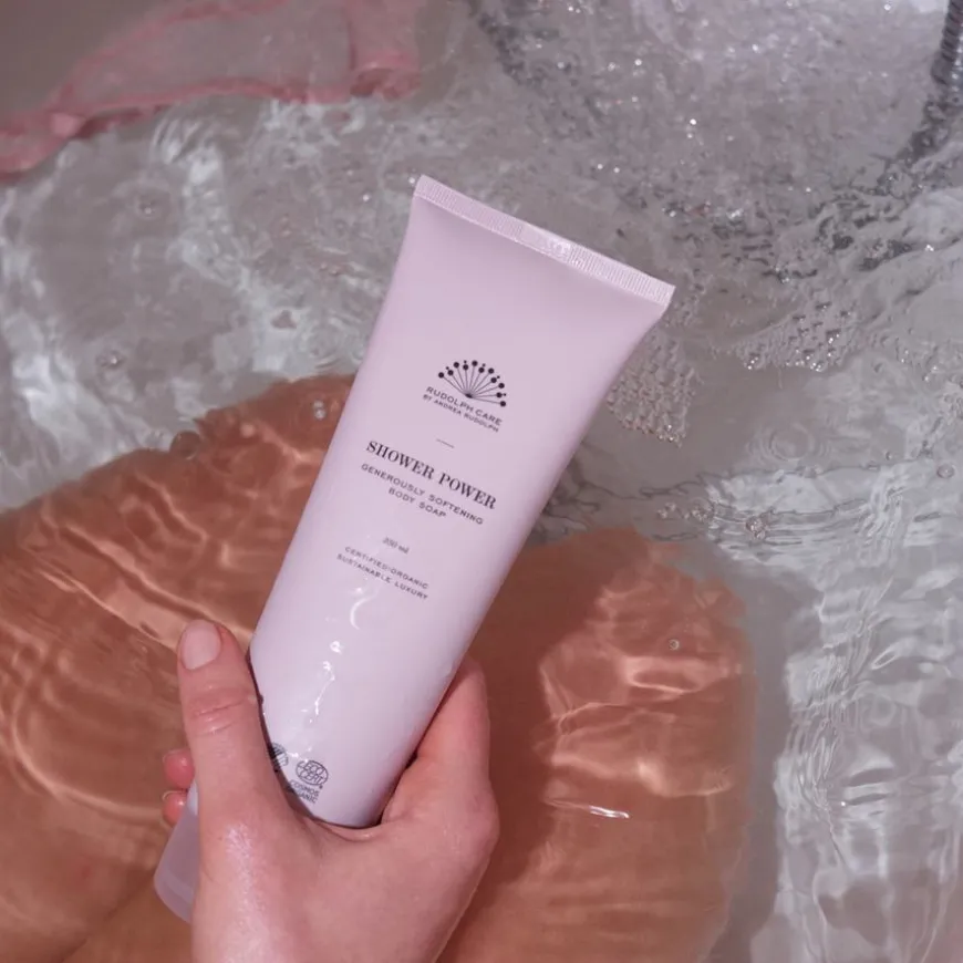 Shower Power Body Soap er en delikat kroppssåpe med en gelékonsistens som forvandles til et silkemykt skum i kontakt med vann. Den renser effektivt uten å forstyrre hudens naturlige balanse eller tørke den ut. Såpens pH-verdi ligger nært hudens egen, noe som gjør den skånsom nok for daglig bruk av hele familien. Shower Power Body Soap bevarer hudens fuktighet og etterlater den ren, myk og frisk. Sertifisert med Svanemerket, Ecocert COSMOS Organic og Vegan Trademark.