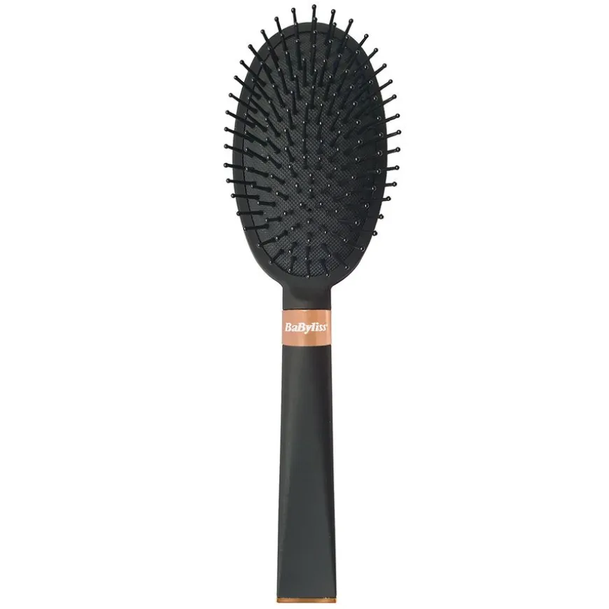 Signature Paddle Brush er en flokeløsende børste – eksklusiv padlebørste for alle hårtyper. Busten er antistatisk og bidrar derfor til å redusere statisk elektrisitet. Gjør håret kontrollert og krusfritt. Håndtaket har en myk berøringsflate. Børsten er designet med vakre kobberdetaljer og har en flat bunn slik at den kan stå.
