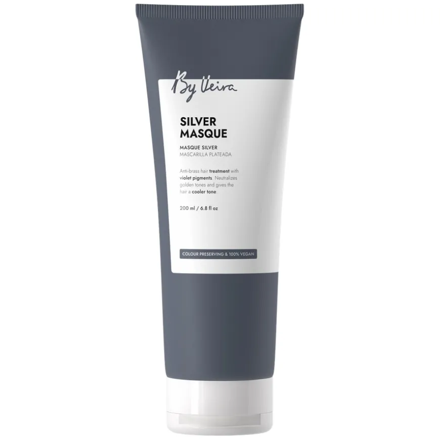 BY VEIRA Silver Masque er en intensiv hårkur designet for å gi håret en dyp fuktighet og silkemyk følelse. Denne masken inneholder pleiende ingredienser som effektivt nøytraliserer gyldne toner og gjenoppretter hårets naturlige glans. Formuleringen er beriket med fargebevarende ingredienser for å sikre at hårfargen din holder seg levende. Produktet er 100% vegansk og passer for alle hårtyper som ønsker ekstra pleie og glans.