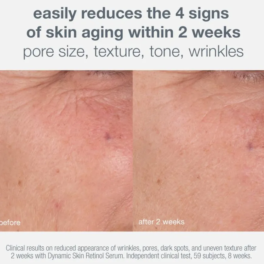 ***Basert på forbrukeroppfatning etter 4 uker, med Dynamic Skin Retinol Serum. Uavhengig klinisk test, 59 deltakere, 8 uker.