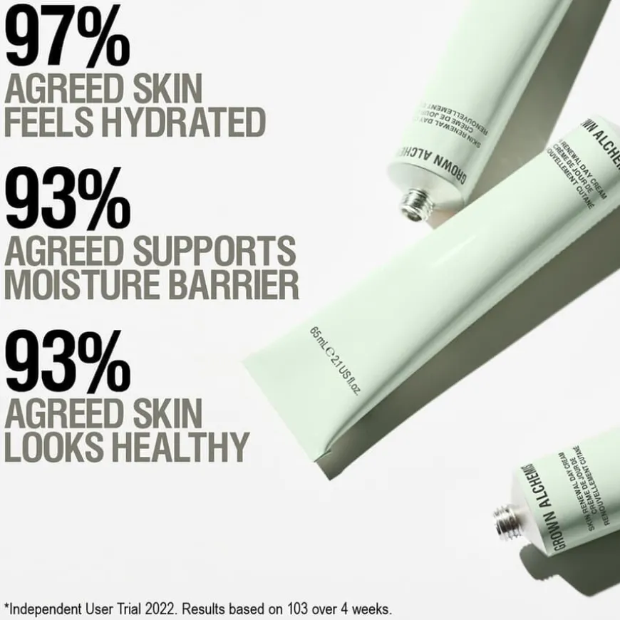 Skin Renewal Day Cream er en gjennoppfriskende og beroligende dagkremen som gir intensivt med fuktighet og støtter fuktighetsbarrieren gjennom dagen. Formulert med poreforminskendeNiacinamid, antioksidanten Echinacea (solhatt) og betennelseshemmende Reishi-sopp. Hud som er utsatt for daglige miljøpåvirkere føles rebalansert, og får en sunn hudtone.