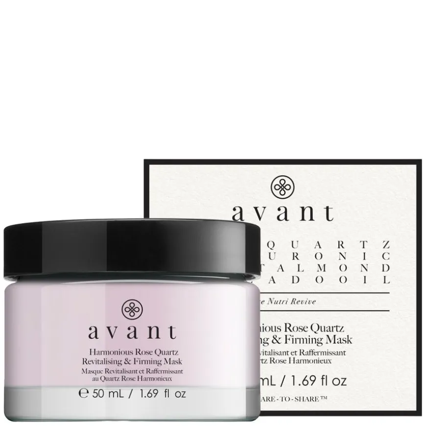 Avant Skincare Harmonious Rose Quartz Revitalising & Firming Mask er designet for å rense porene, absorbere urenheter og begrense overflødig talg, slik at huden ser balansert og sunn ut. Harmonious Rose Quartz Revitalising & Firming Mask strammer og renser tilstoppede porer, og lysner hudtonen samtidig som den trekker ut urenheter. Rens og nærd huden i dybden ved å trekke ut giftstoffer og poretilstoppende olje. Masken etterlater huden fastere, mer smidig og yngre, takket være kraftige ingredienser som rose, hyaluronsyre og søtmandel.