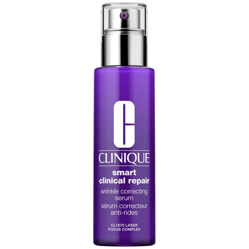 Smart Clinical Repair Serum er et kraftig serum designet for de som søker en effektiv løsning mot rynker. Dette serumet kombinerer tre anti-aging teknologier som målrettet bekjemper ulike typer rynker og fine linjer fra flere vinkler, og kan levere synlige resultater på bare 10 dager. Det er beriket med CL1870 Laser Focus Complex som inneholder spesielt utvalgte peptider som stimulerer hudens naturlige kollagenproduksjon, styrker og gjenoppbygger hudens struktur. Hyaluronsyre tilfører umiddelbar fuktighet, gir en fyldigere hud og reduserer synlige rynker og fine linjer. Til slutt bidrar et potent retinoid til hudens cellefornyelse, noe som ytterligere reduserer forekomsten av rynker og gir huden en strålende glød. Passer for alle hudtyper.