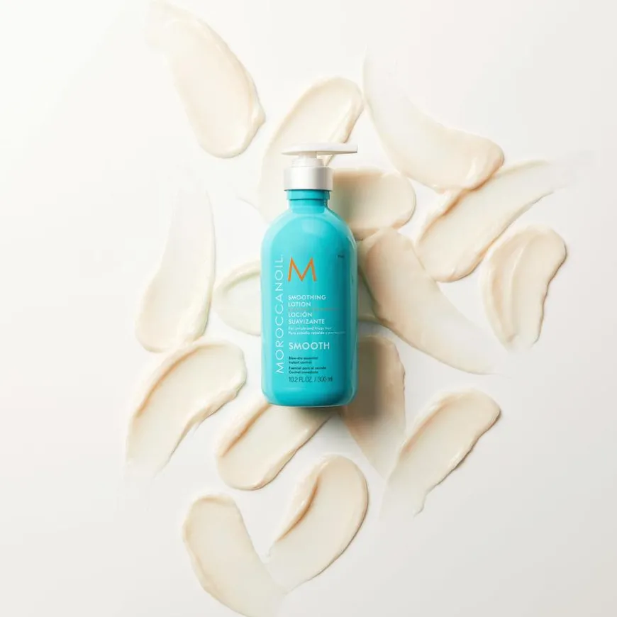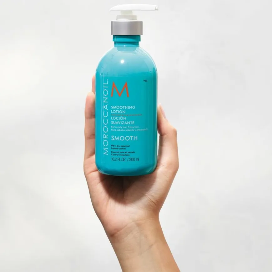 - For en glatt look med stort volum blandes 1–2 pumpetrykk Moroccanoil Treatment med 1–2 pumpetrykk Moroccanoil Smoothing Lotion og en mengde Moroccanoil Volumizing Mousse på størrelse med en golfball.