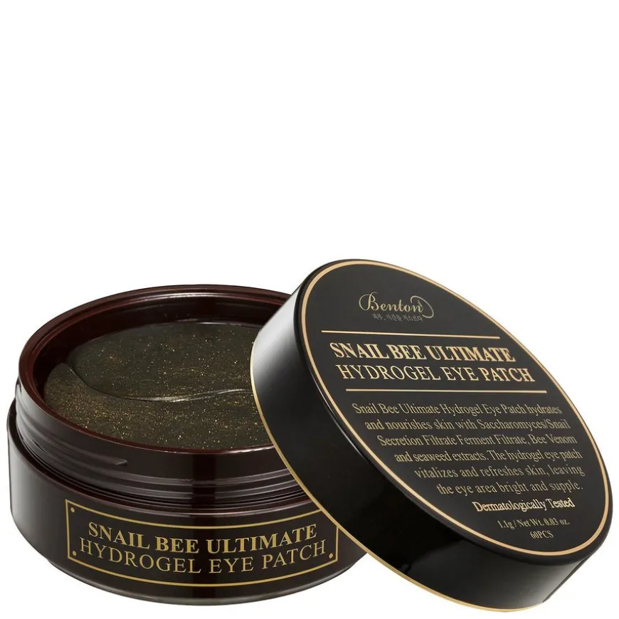 Si farvel til trøtte øyne med Benton Snail Bee Ultimate Hydrogel Eye Patch. Disse små øyelappene av hydrogel er dyppet i et luksuriøst serum med høy konsentrasjon av aktive ingredienser som revitaliserer, fukter og styrker den tynne huden rundt øynene. Serumet baseres på fermentert sneglesekret som sammen med biegift forebygger forekomsten av fine linjer, og gjør huden fastere. Dette luksuriøse serumet inneholder også gull-, diamant- og perlepulver samt aktivt kull for å revitalisere og detoxe huden. Øyelappene er produsert av miljøvennlig hydrogel basert på ekstrakt av alger, og fester seg enkelt på huden. Kan også brukes på andre deler av ansiktet.
