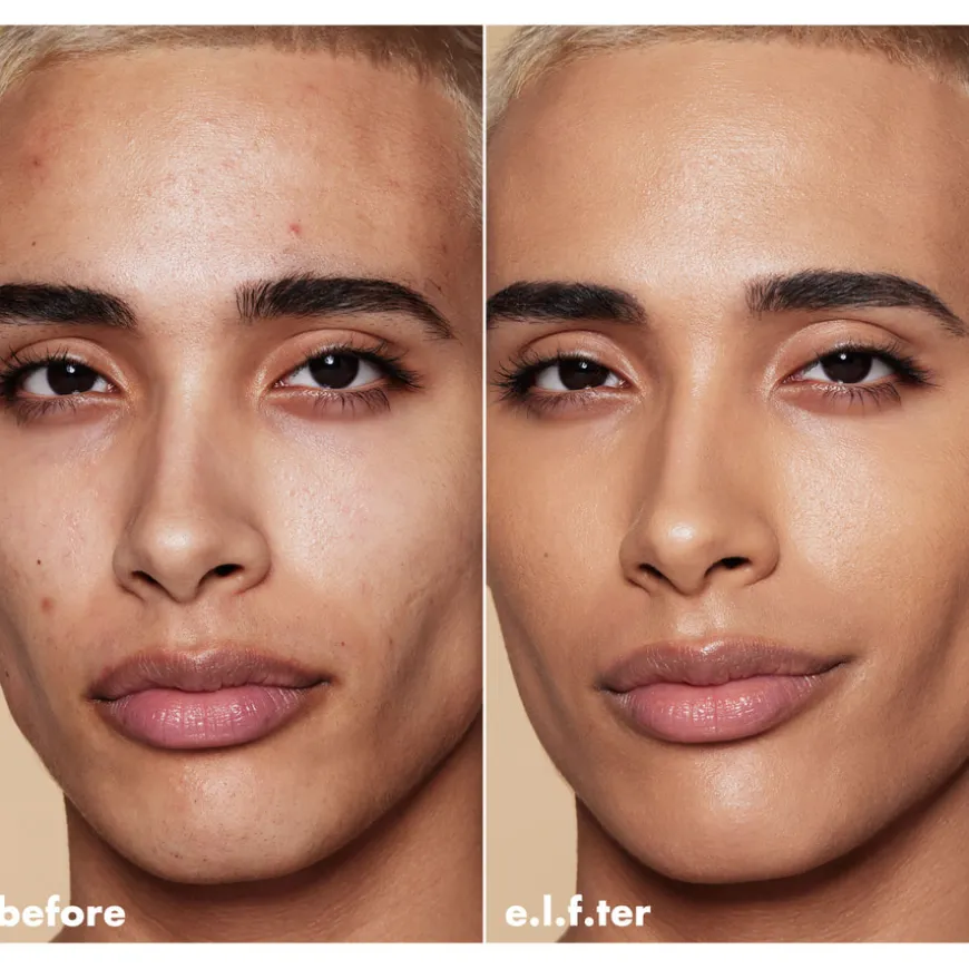 - Bruk en foundationbørste eller e.l.f.’s Total Face Sponge.