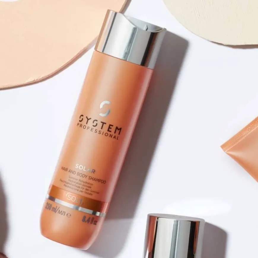System Professional Solar Shampoo er en daglig fuktighetsgivende shampoo som skånsomt fjerner vannfast solkrem, salt- og klorrester fra både håret og huden.