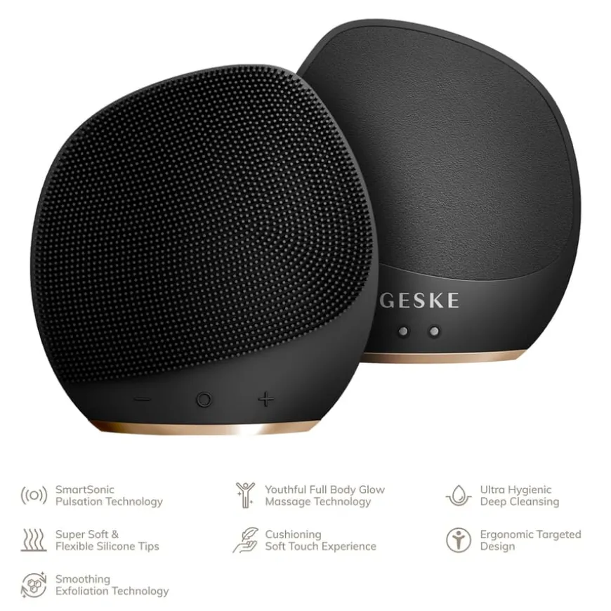 Sonic Body Brush 7 In 1 er en avansert kroppspleiebørste designet for å gi deg en luksuriøs hudpleieopplevelse i dusjen. Med en eksfolierende overflate på én side og supermyke silikonbørster på den andre, gir enheten både dyp rens og skånsom massasje. Den kombinerer SmartSonic Pulsation Technology, Ultra Hygienic Deep Cleansing og Intensive Exfoliation for å forbedre hudens tekstur, glød og fasthet. Perfekt for områder med grov hud, som albuer, knær og føtter. Den ergonomiske utformingen gjør det enkelt å nå hele kroppen. Appen fra GESKE gir deg personlig veiledning og anbefalinger for maksimal effekt.