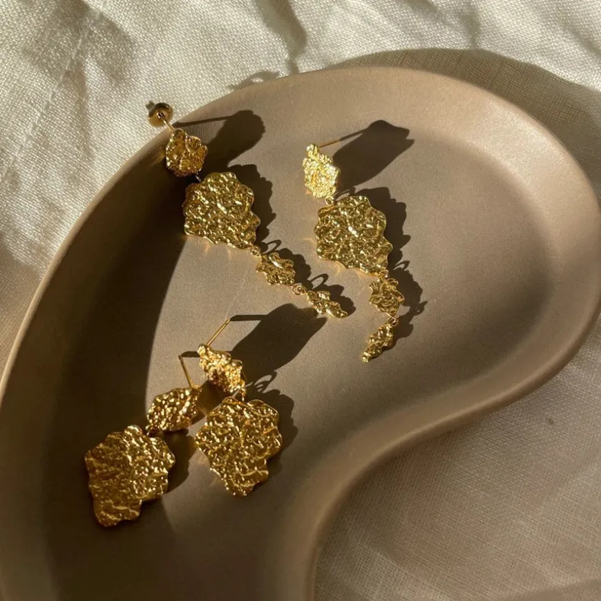 Sophia Earstuds i 18kt gullbelagt rustfritt stål, designet med en banket overflate for et trendy og rått uttrykk. Perfekte for å følge de nyeste trendene.